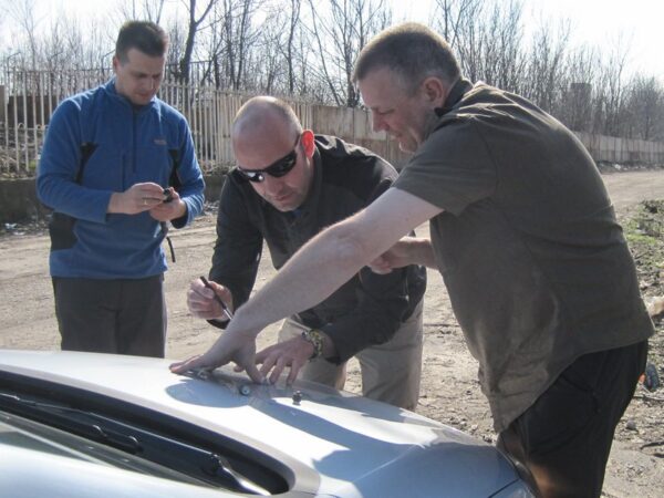 Tijd voor dag 2. Zondag 8 maart. Ruim voor negen uur ‘s ochtends stonden de vier avonturiers buiten het pension. Vanuit Nederland waren al afspraken gemaakt met een lokale geocacher. Hij zou zorgen dat de grens met Moldavië en Ukraine overgestoken kon worden. Met de gehuurde auto was dat namelijk niet haalbaar. “Om negen uur komt mijn vriend jullie oppikken met een witte Dacia” was de afspraak.
