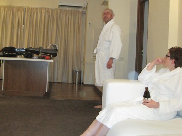 Na ruim twee uur stapten vier voldane cachers hun hotelkamer binnen. De avonturen van de beleefde dag passeerden onder het genot van een biertje de revue. Daarna was het gedaan voor deze dag. Nog één enerverende dag voor de boeg!