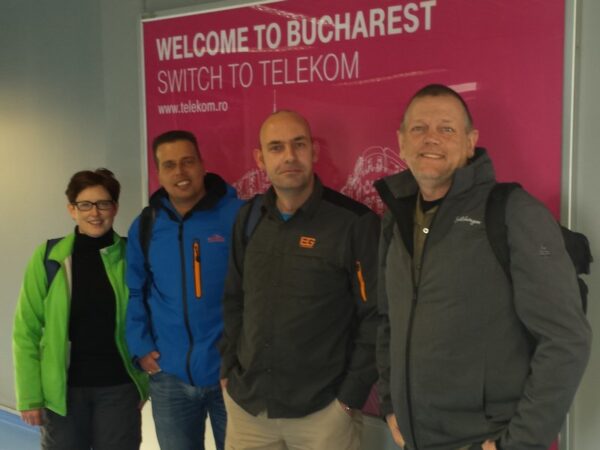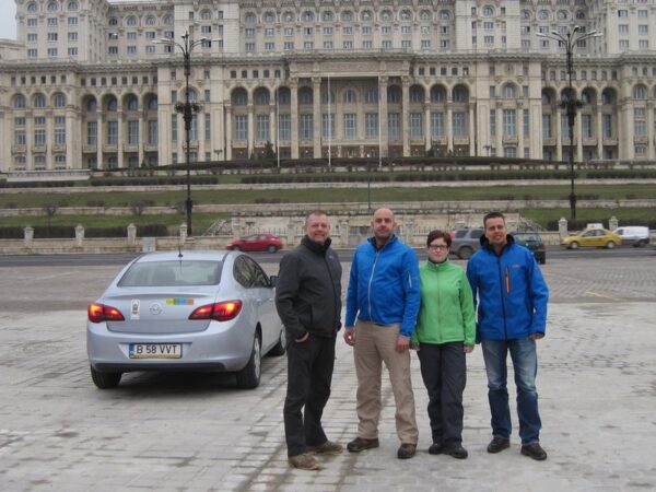 Alles liep volgens plan totdat de vlucht naar Boekarest een vertraging van zo’n twee uur bleek te hebben. Er was echter meer nodig om het team te remmen in hun enthousiasme. En meer kwam er niet, gelukkig. Hup! Aan boord van de RyanAir-vlucht die in zo’n twee-en-een-half uur naar Roemenië vloog. Aangekomen liep alles op de geplande rolletjes. Na het afhalen van bagage en het ophalen van de huurauto werd door het loggen van “Otopeni Airport ~ex TB Hostel~“ al snel het eerste land “op de kaart gezet.” Roemenië! Check! Na een Kodak-momentje volgde een drie uur durende autorit van Boekarest naar Galati.