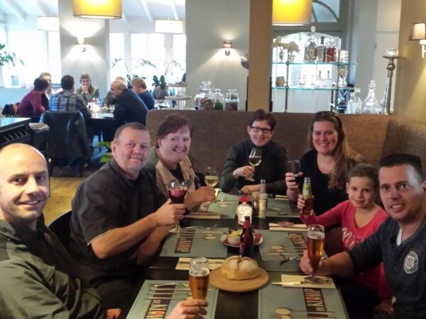 Onder het genot van een gezellige maaltijd werden de verhalen met de achterblijvers uitgewisseld. Achterblijvers zonder wie dit geweldige avontuur niet mogelijk was geweest!